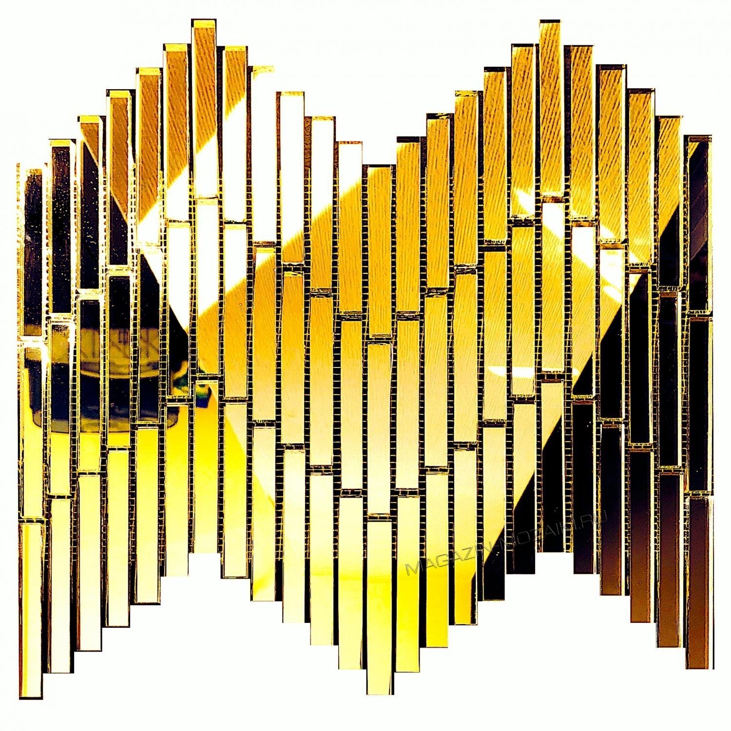 Мозаика зеркальная на сетке, золотое зеркало