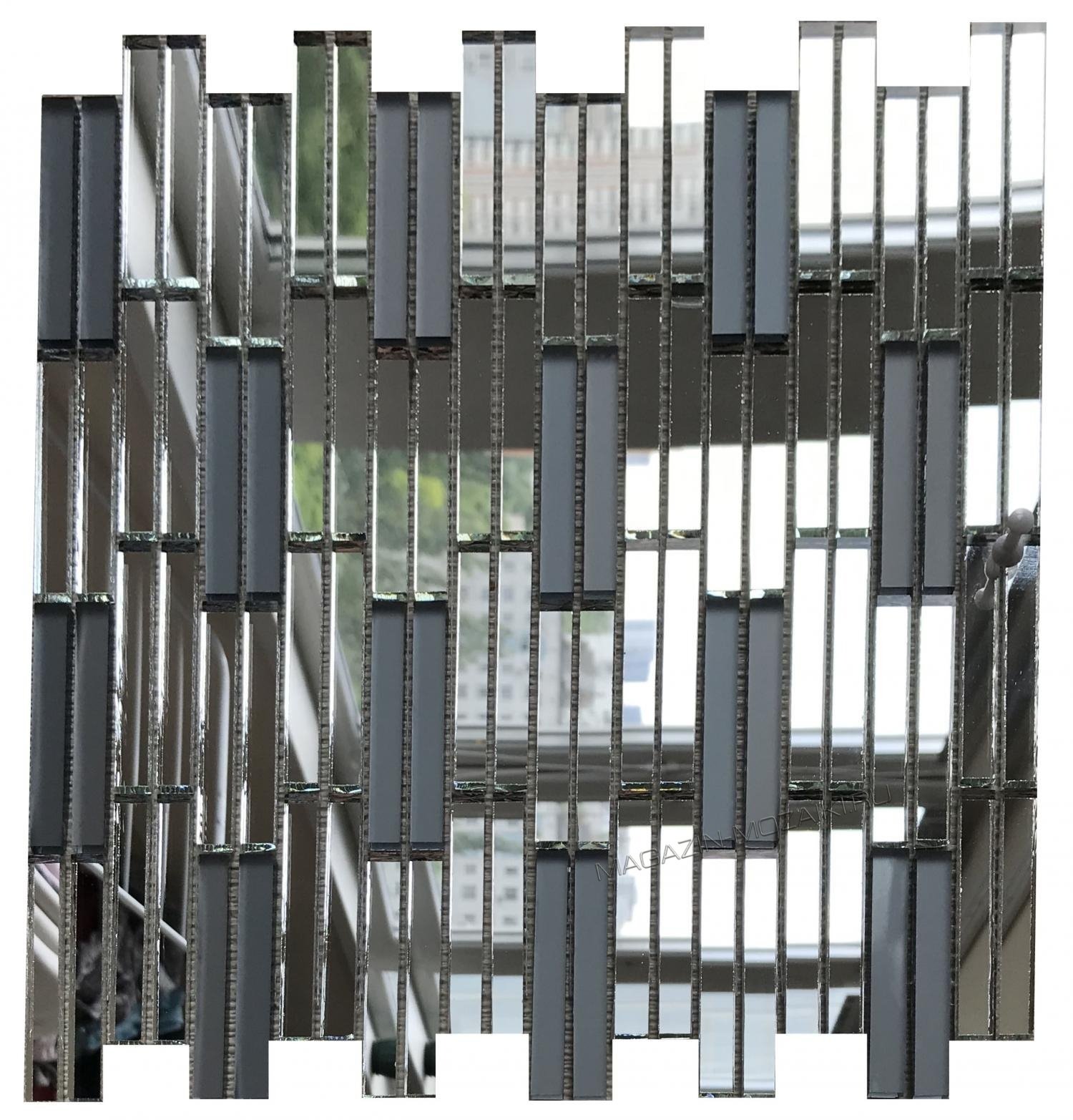 Мозаика зеркальная на сетке, серебряное + матовое серое зеркало