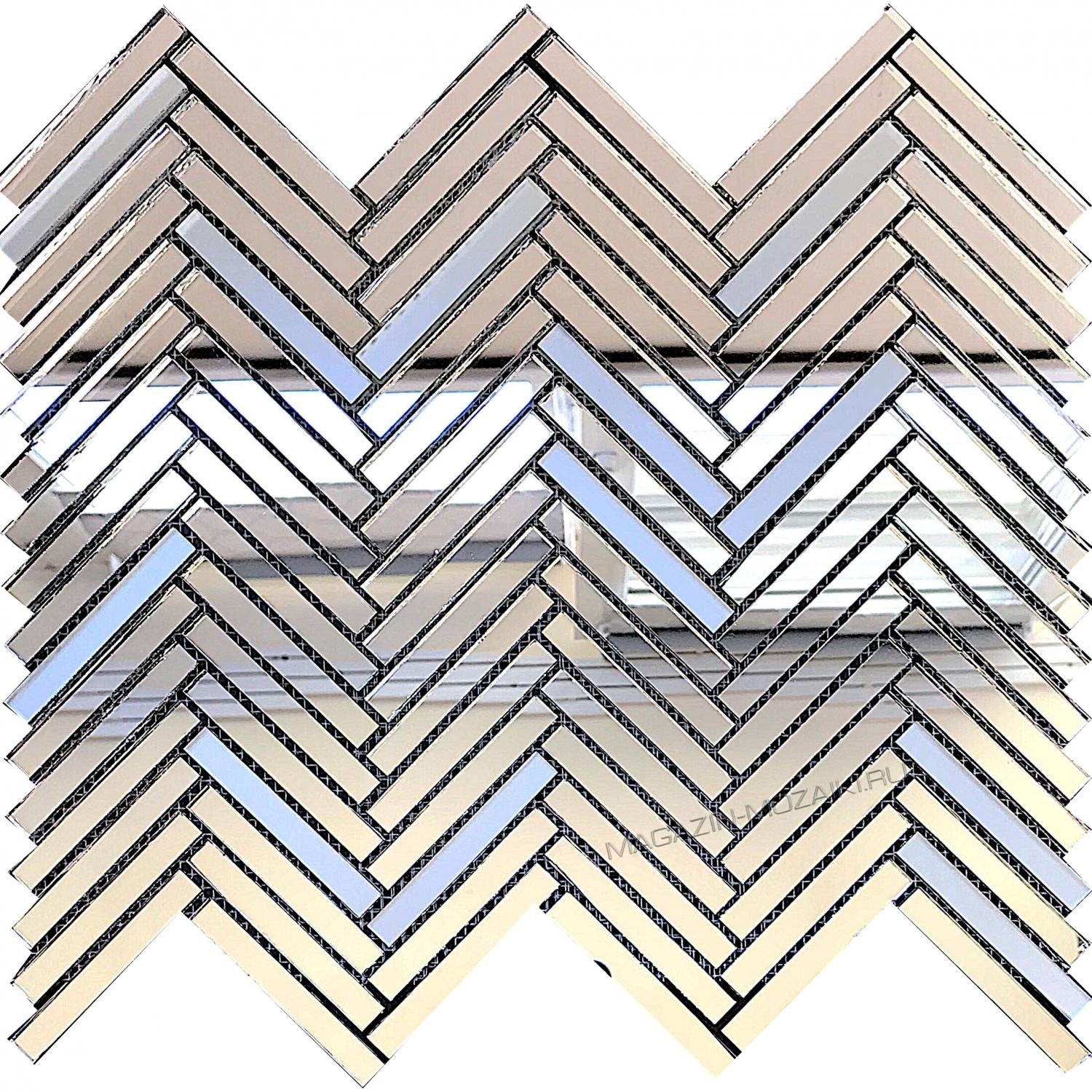 Мозаика зеркальная на сетке, серебряное + матовое серебряное зеркало